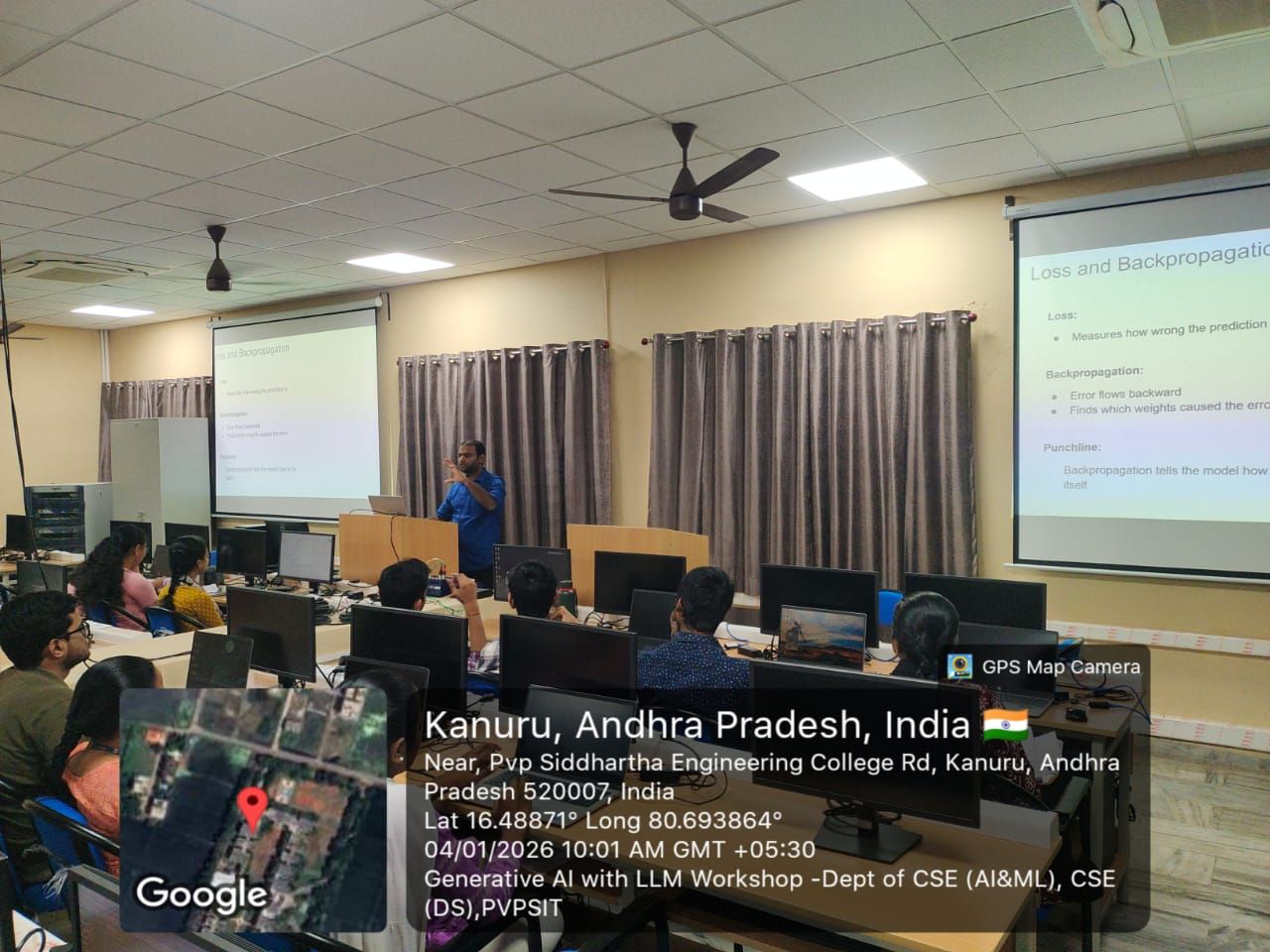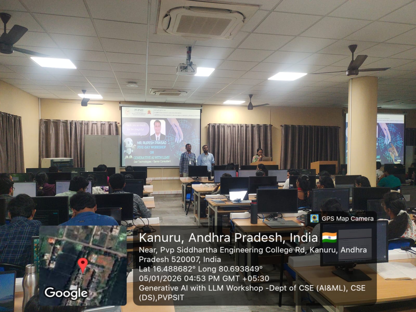 Workshop on Generative AI, LLMs, RAG, and Agents, offering students a strong blend of theory, system architecture, and real-world relevance in modern AI systems, led by Mr. Rupesh Prasad.