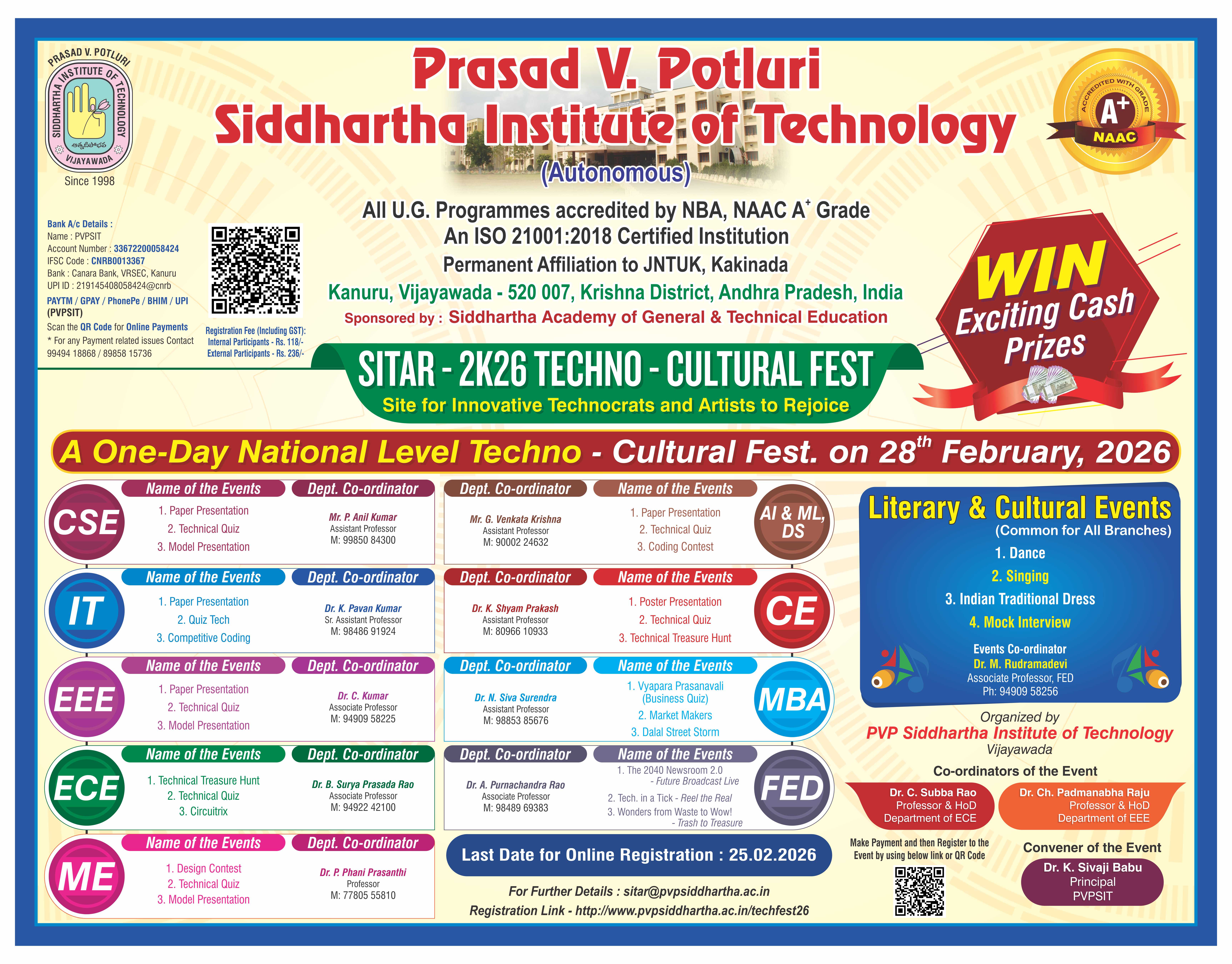 The Department of Civil Engineering at Prasad V. Potluri Siddhartha Institute of Technology (PVPSIT), established in 2008, offers a B.Tech programme in Civil Engineering. As one of the core engineering disciplines, the department combines strong fundamental knowledge with modern technologies to prepare graduates for careers in construction, infrastructure development, public sector organizations, and allied industries.